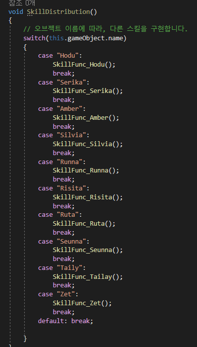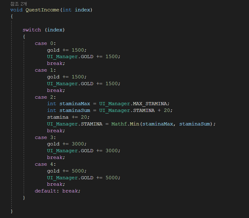 Switch문은 TextMeshPro를 저장한 texts 배열의 인덱스에 따라 분기하여 필요한 UI 문구를 출력합니다.