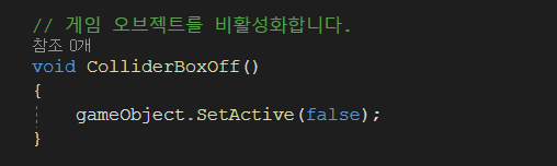 이후, OffCanvas함수를 Invoke함수로 호출하여 다시 SetActive를 false로 바꿉니다.