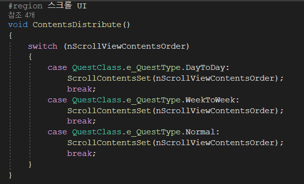 일일 임무, 주간 임무, 일반 임무를 nScrollViewContentsOrder에 따라 구분하여 함수를 호출하고 파라미터를 넘깁니다.