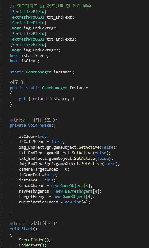 게임매니저에서 게임에 필요한 변수와 오브젝트들을 초기화한 이후에 EnemyCreateSetManager 클래스에 접근합니다.