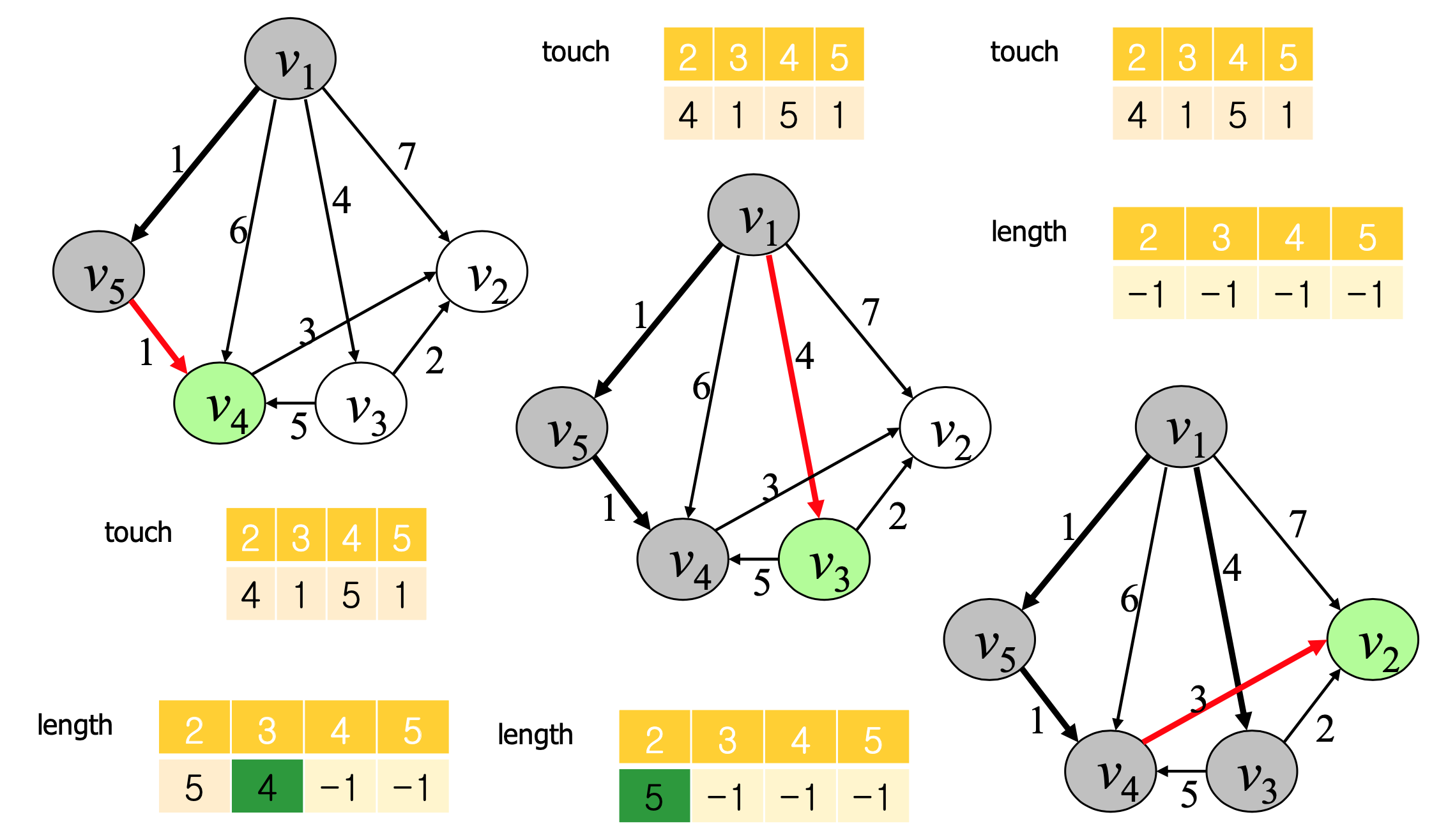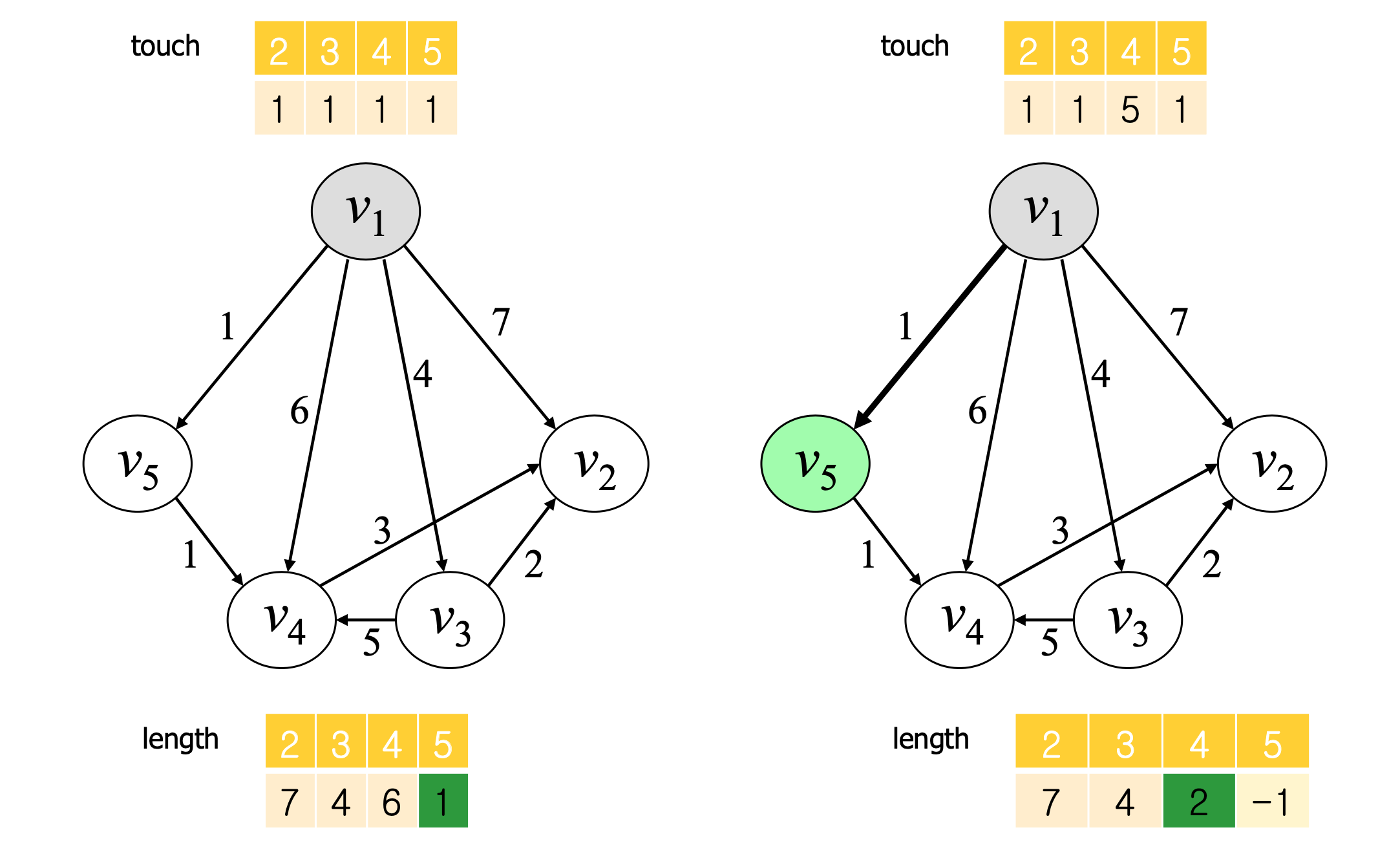 touch[i] = 1; // vertex on the current shortest path from v1,