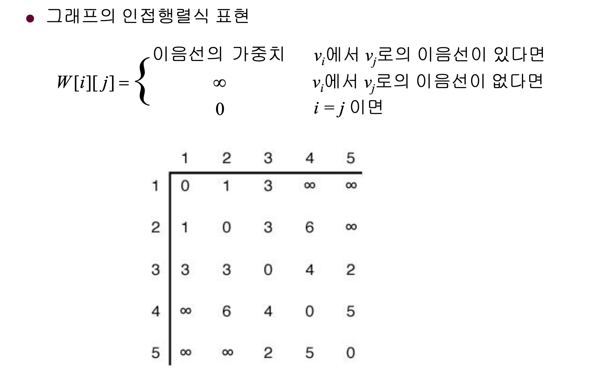 distance[i] = W[1][i]; // vi과 v1을 잇는 이음선의 가중치로 초기화