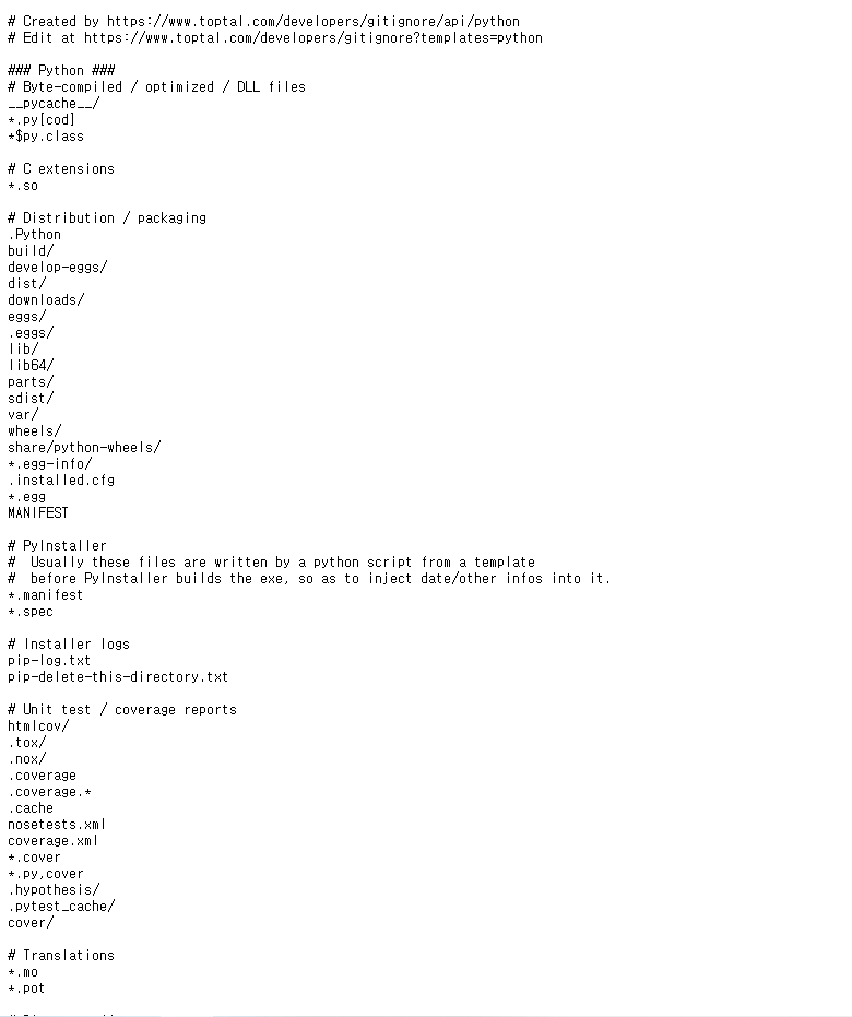 이쪽에 가면 개발환경에 따라 깃이그노어 템플릿을 만들어주어