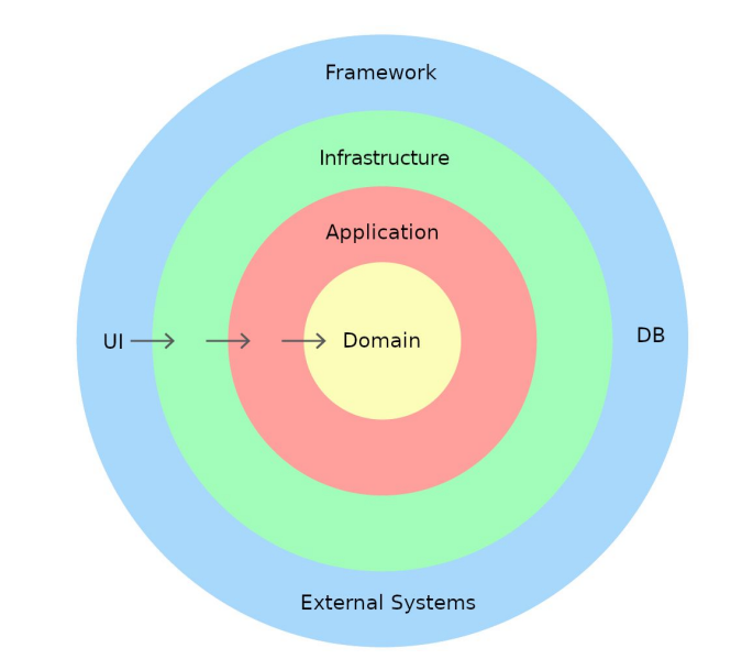 DDD도 Layered Architecture 와 같이 표현,응용,도메인,인프라스트럭처 4개의 계층으로 이루어져 있으며 고수준 모듈이 저수준 모듈에 의존하지 않는 구조로 개발해야 한다. 만약 불가피하게 응용 계층에서 인프라스트럭처의 코드를 사용 할 경우 의존역전원칙(DIP) 을 이용하여 하위 계층에 의존하지 않는 형태로 개발해야 한다.
