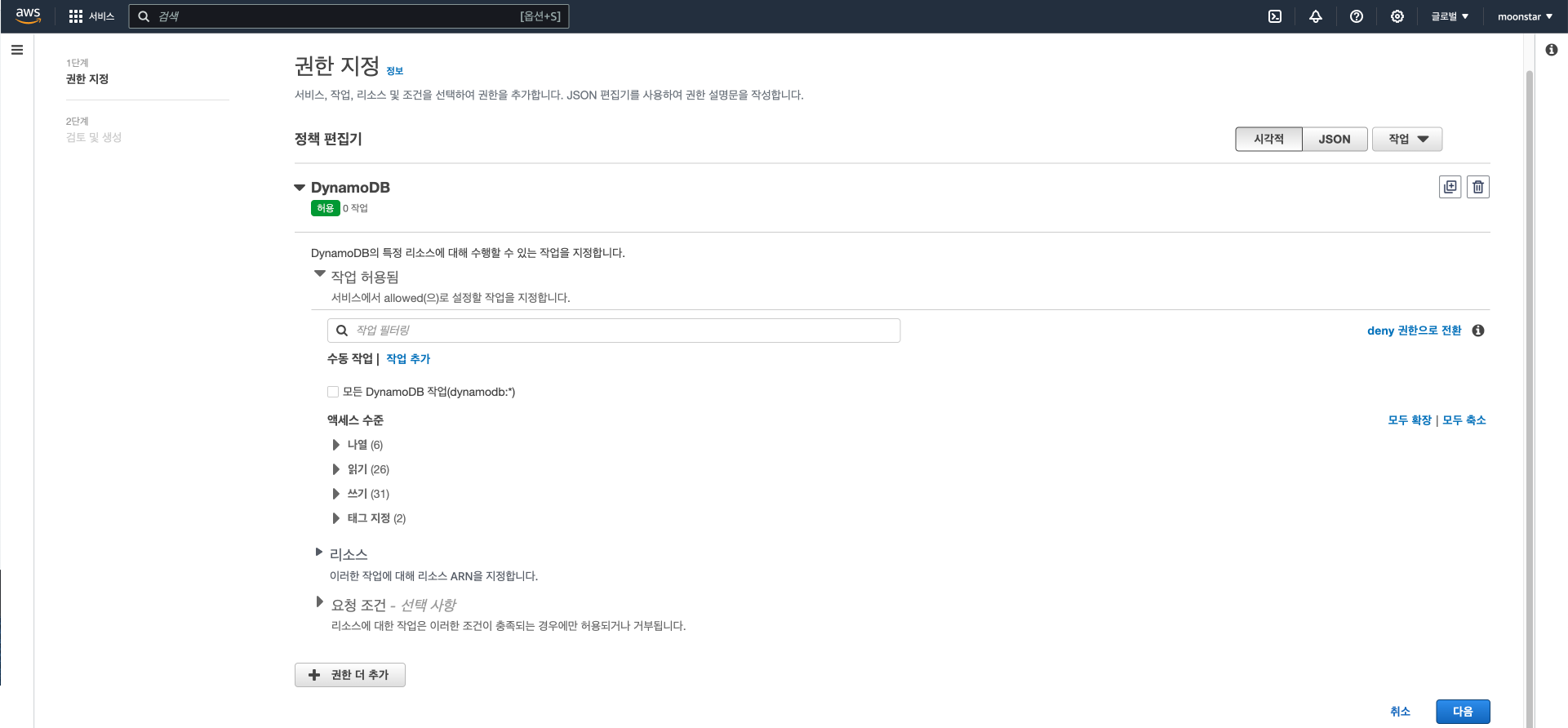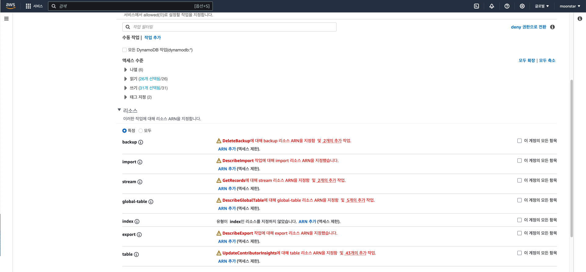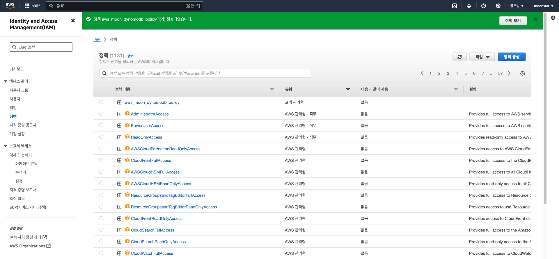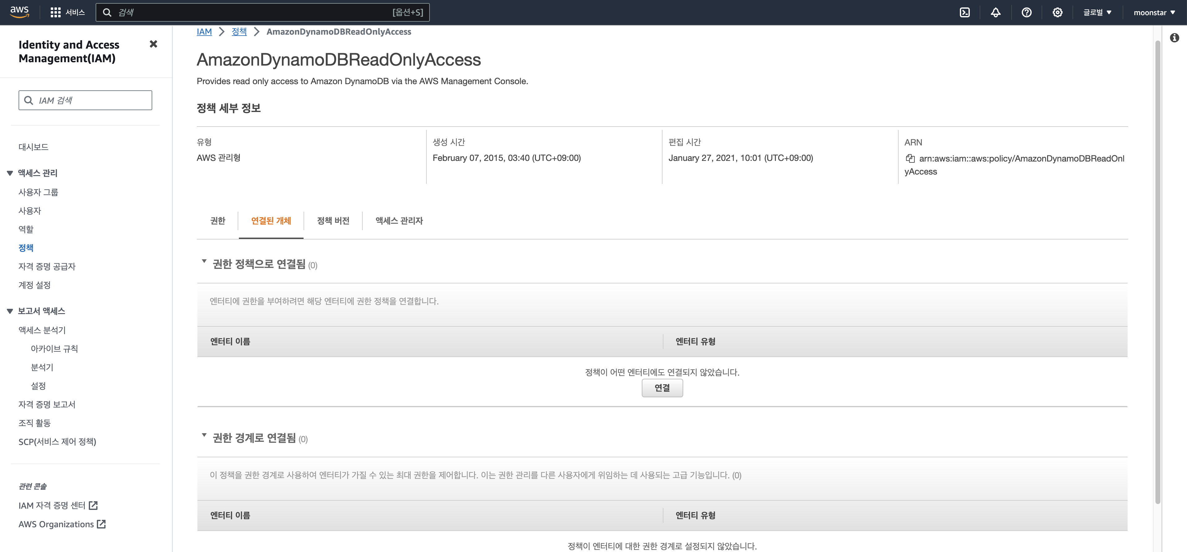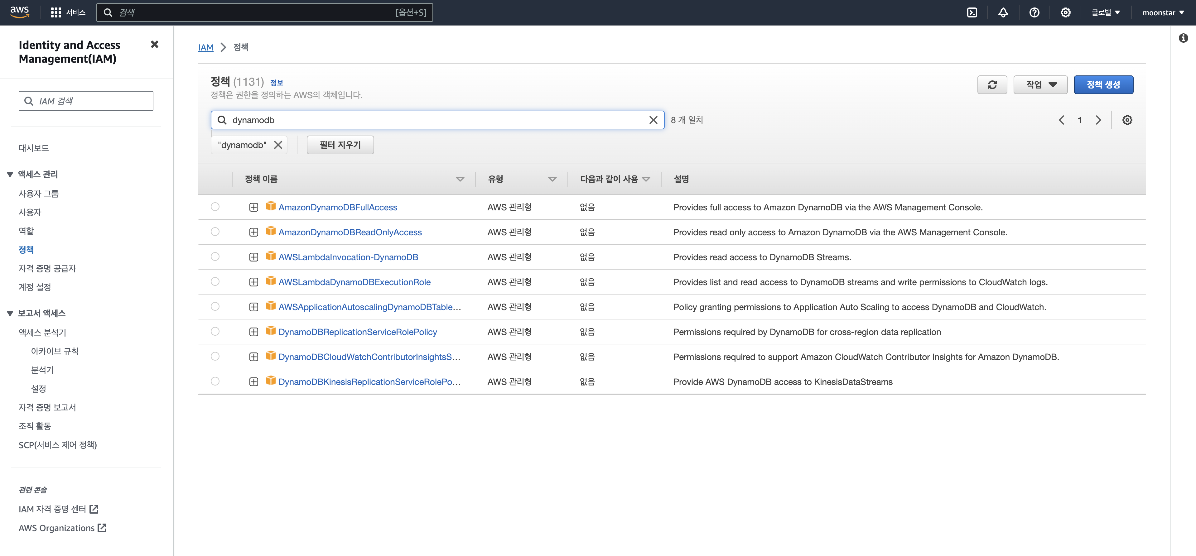 그러면 이제 aws_moon은 DynamoDB 읽기 권한만 생긴 것입니다.