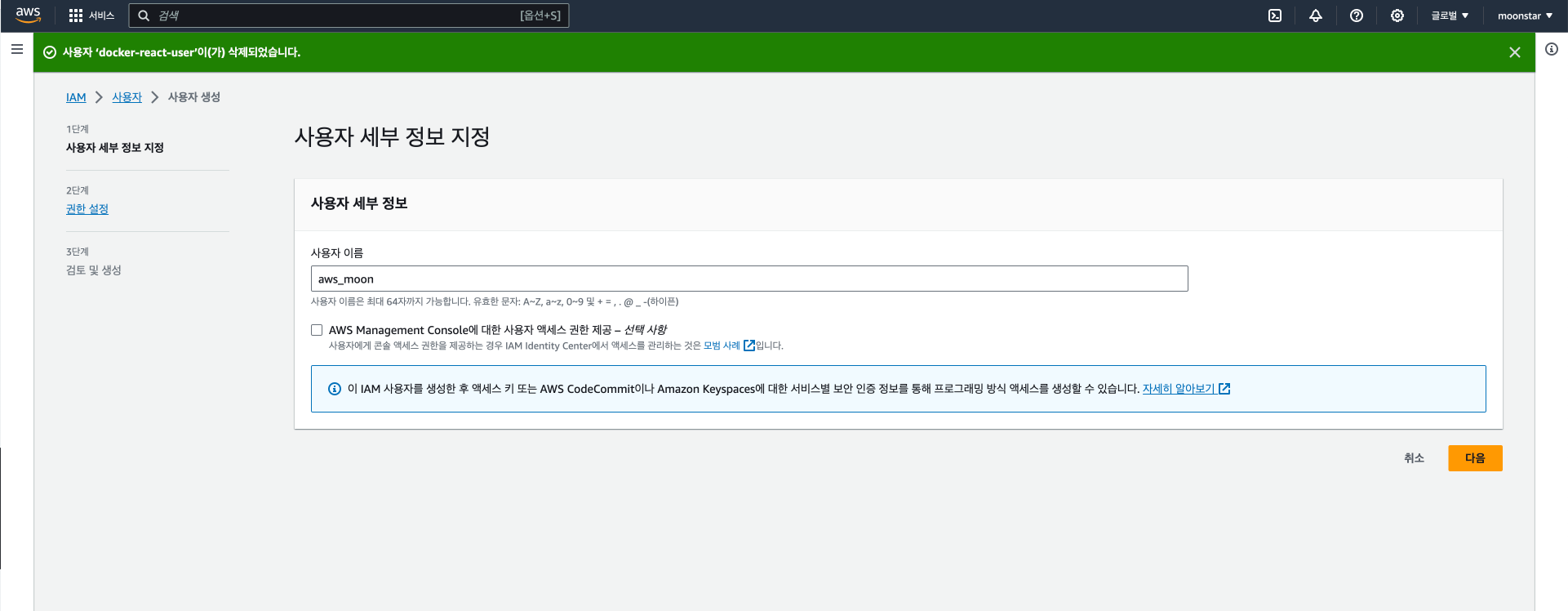 저는 aws_moon라고 입력하겠습니다.
