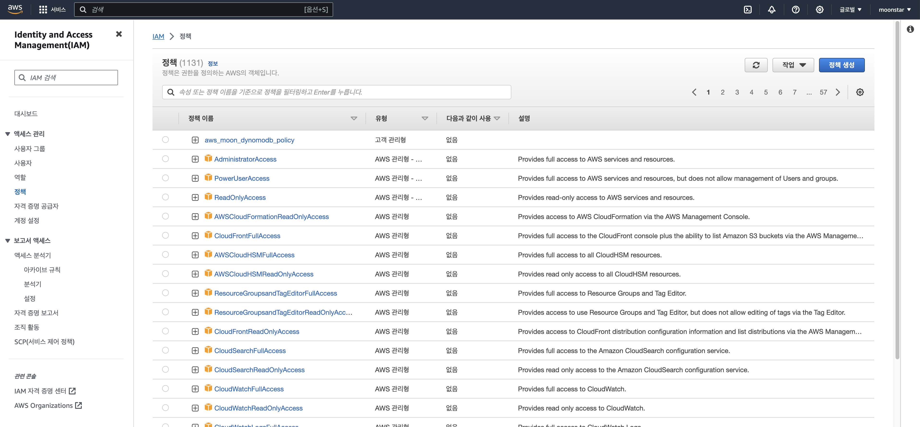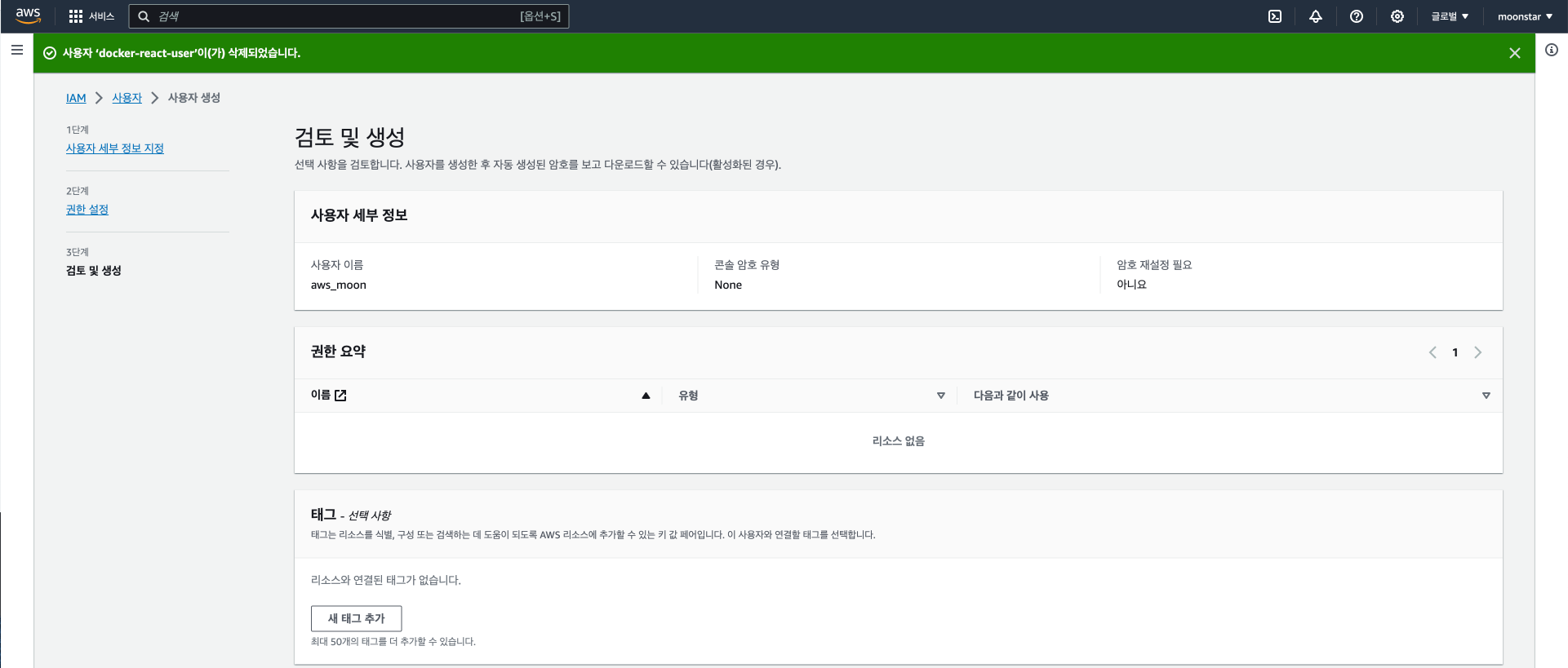 이로써 aws_moon 유저는 방금 우리가 추가한 정책으로 인해서