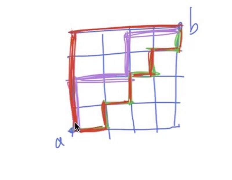 대각선으로 이동하지 못한다고 했을 때 이런 경로가 가장 빠른 것을 알 수 있다.
