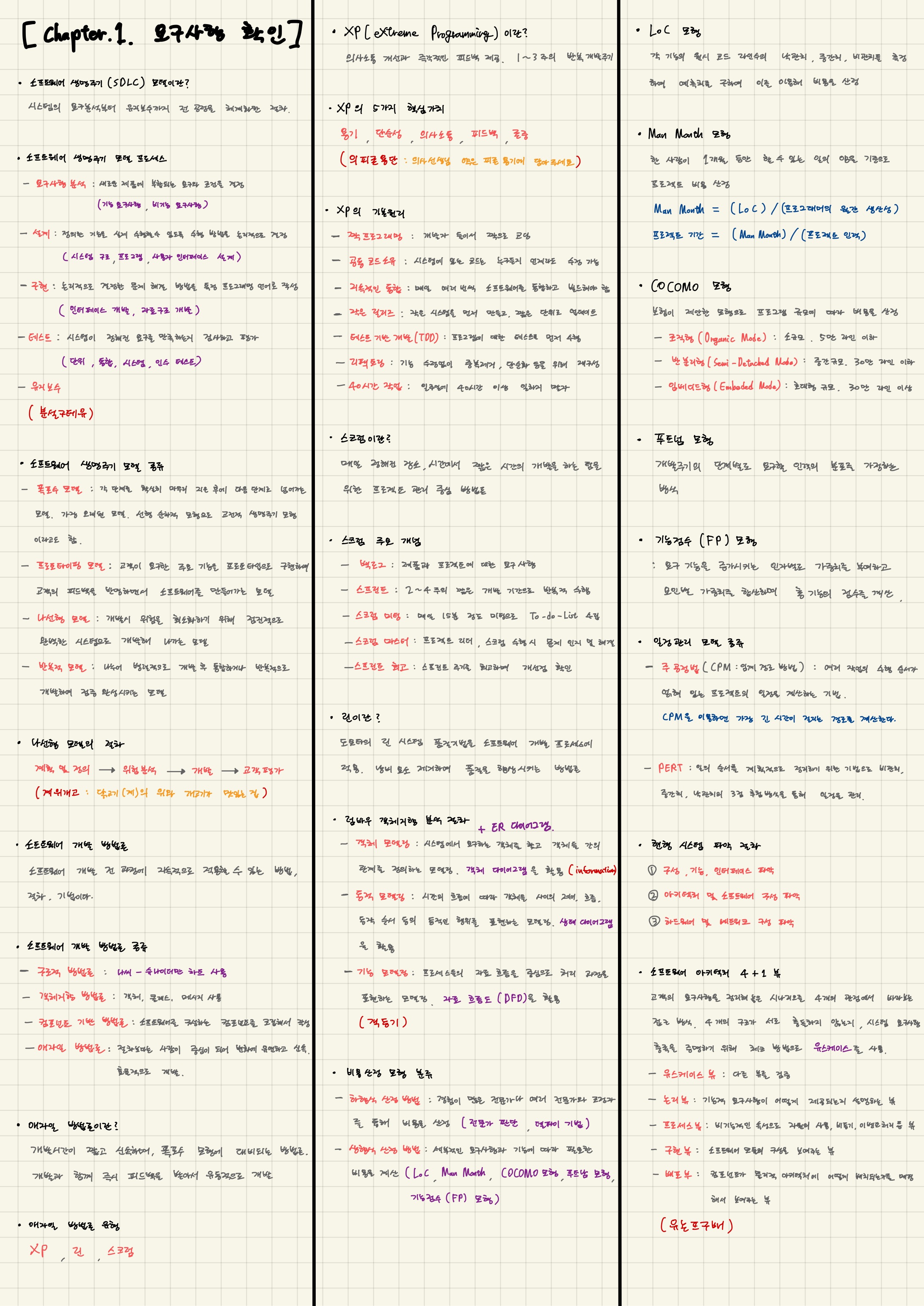 첫 장을 펼치니 외워야 하는 개념들이 벌써 수두룩했다. '소프트웨어 생명주기 모델', '소프트웨어 개발 방법론 종류', '애자일 방법론 유형' 등등 온갖 단어들이 난무해 기가 죽었다.