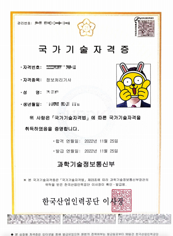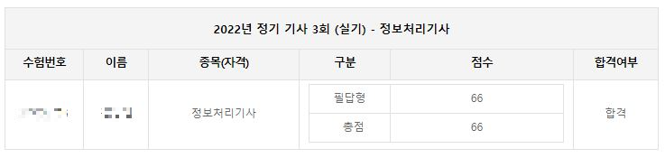 이렇게 2022년 3회 필기, 실기 동회차 시험을 모두 합격함으로써 정보처리기사 자격을 취득했다.
