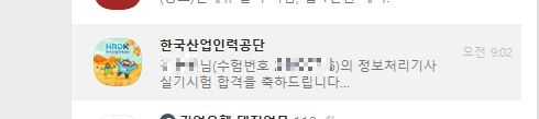 발표날 아침에 일어나 자동적으로 카카오톡을 켜니 한국산업인력공단에서 메시지를 보낸 것을 발견했다. 그리고 미리 보기 화면에서 '합격'이란 단어를 봤다.