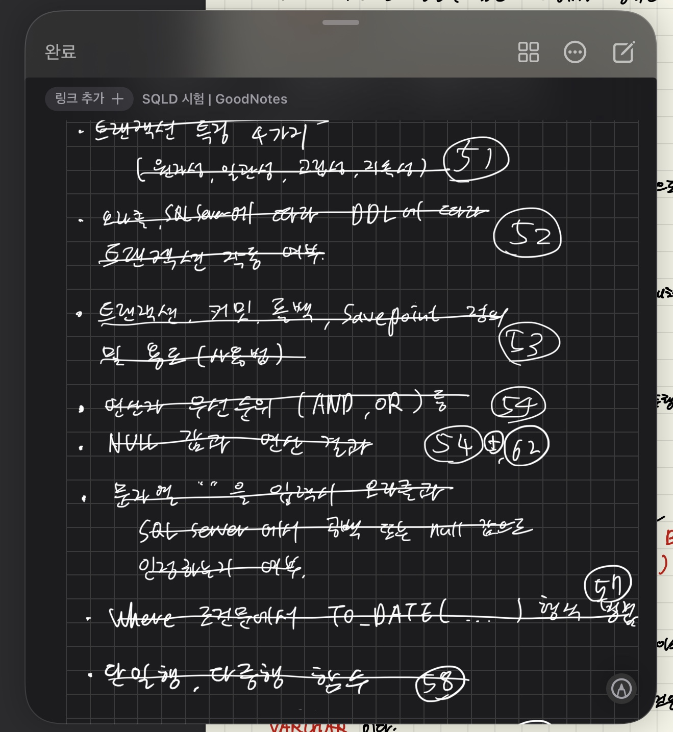 ▶항상 불안감과 초조함에 심란했다. 내가 잘하고 있는지 확신이 없었다. 그럴수록 눈에 보이는 성과가 필요했다. SQLD 자격증이 생긴다면 스스로에게 잘하고 있다고, 결실을 위해 노력하고 있다고 위로할 수 있을 것 같았다. 현재 열심히 하고 있다는 증표로써 나 자신에게 증명하고 싶었다.
