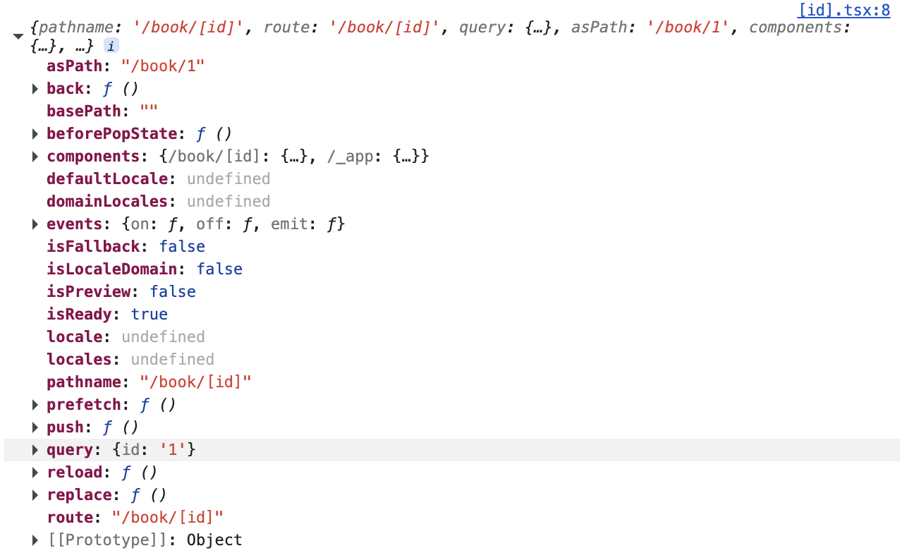 위 코드에서 '~/book/1'로 주소를 쳤을 때 콘솔에 보이는 내용은 아래 이미지와 같음