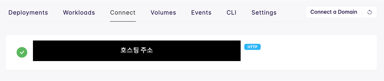 서비스를 클릭하여 connect에 가면 호스팅 주소 확인 가능