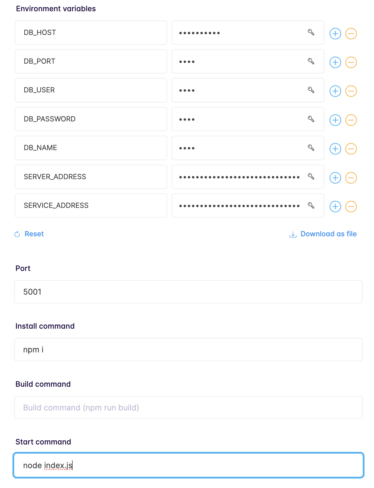install command와 start commend도 실행 커맨드에 맞게 작성 (Build는 필요없다면 작성하지 않기)