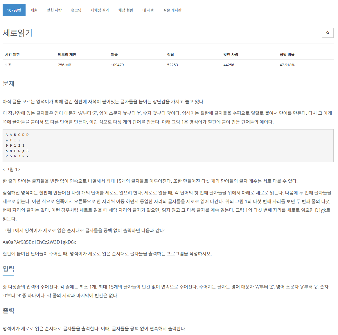 - 입력을 한 줄씩 받아 각 글자를 1차원 char 배열의 인덱스(j*5+i)에 저장