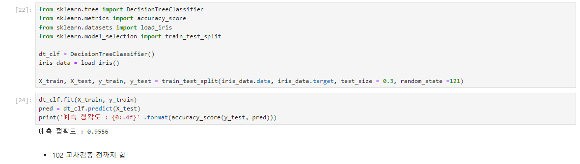 train_test_split()을 이용해 붓꽃 데이터세트를 학습 및 테스트 데이터 세트로 분리