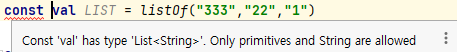 const는 val 앞에 써야 한대
