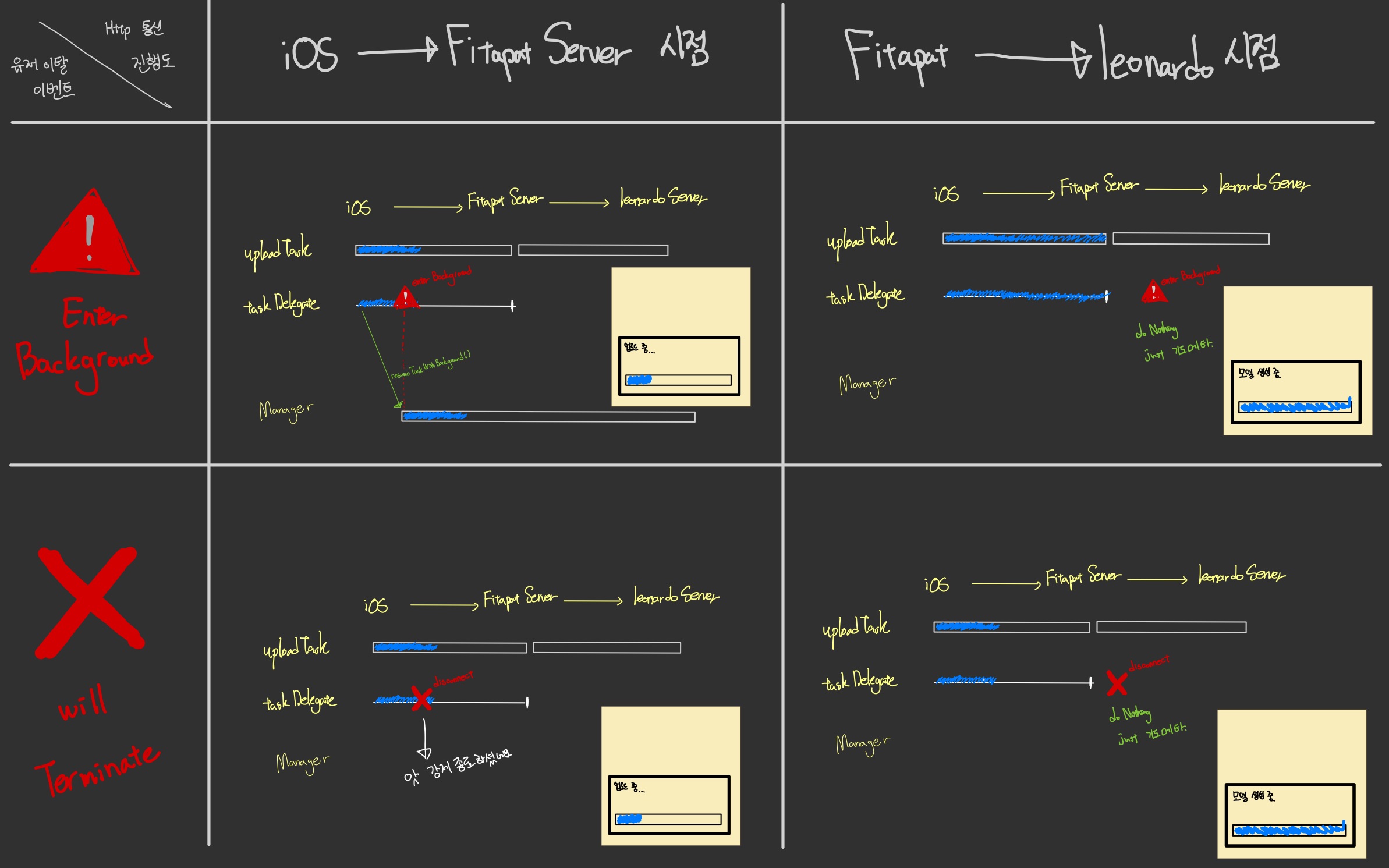 이는 이미지 업로드가 99%가 됐을 때 유저가 앱을 잠깐이라도 나간다면 background세션으로 0%부터 다시 시작해야 한다는 단점이 있습니다.