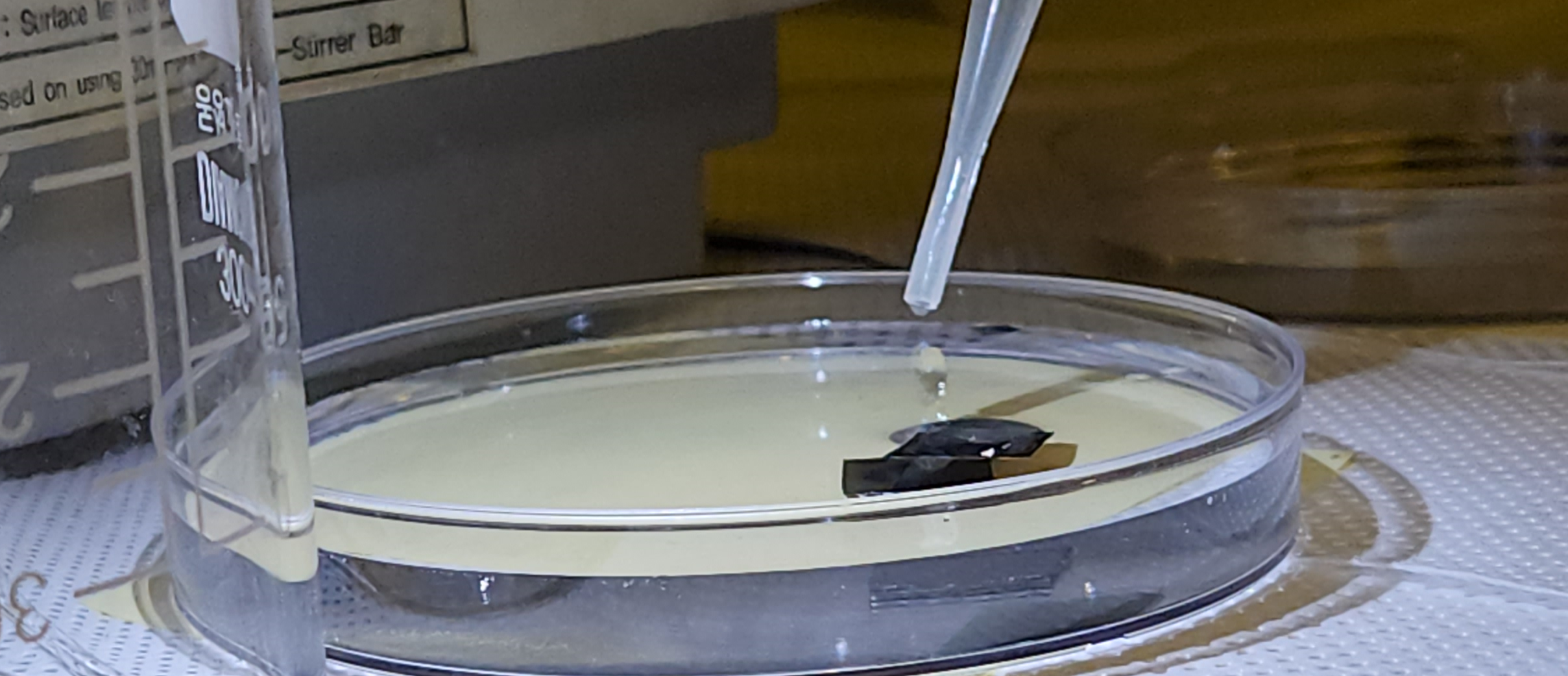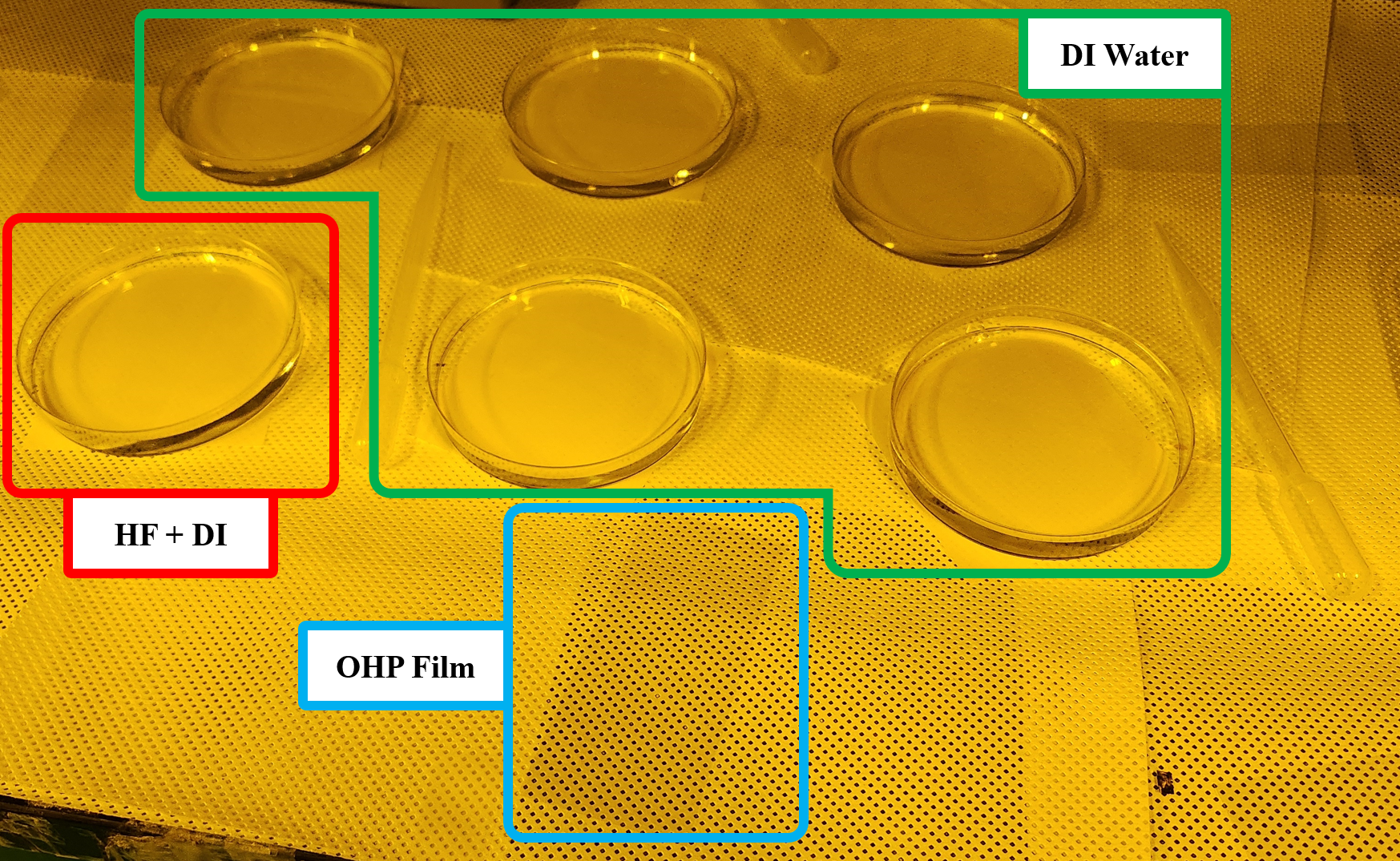 따라서 희석된 HF 용액에 Sample을 집어넣고 주위에 해당 용액을 떨어뜨려 파형을 만들어 줌.