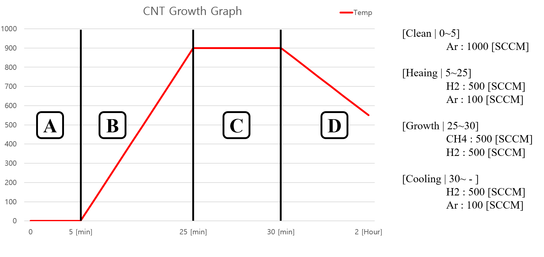 CNT 성장[D | 00:30 ~ 02:00 | 900~0°C]