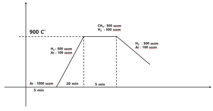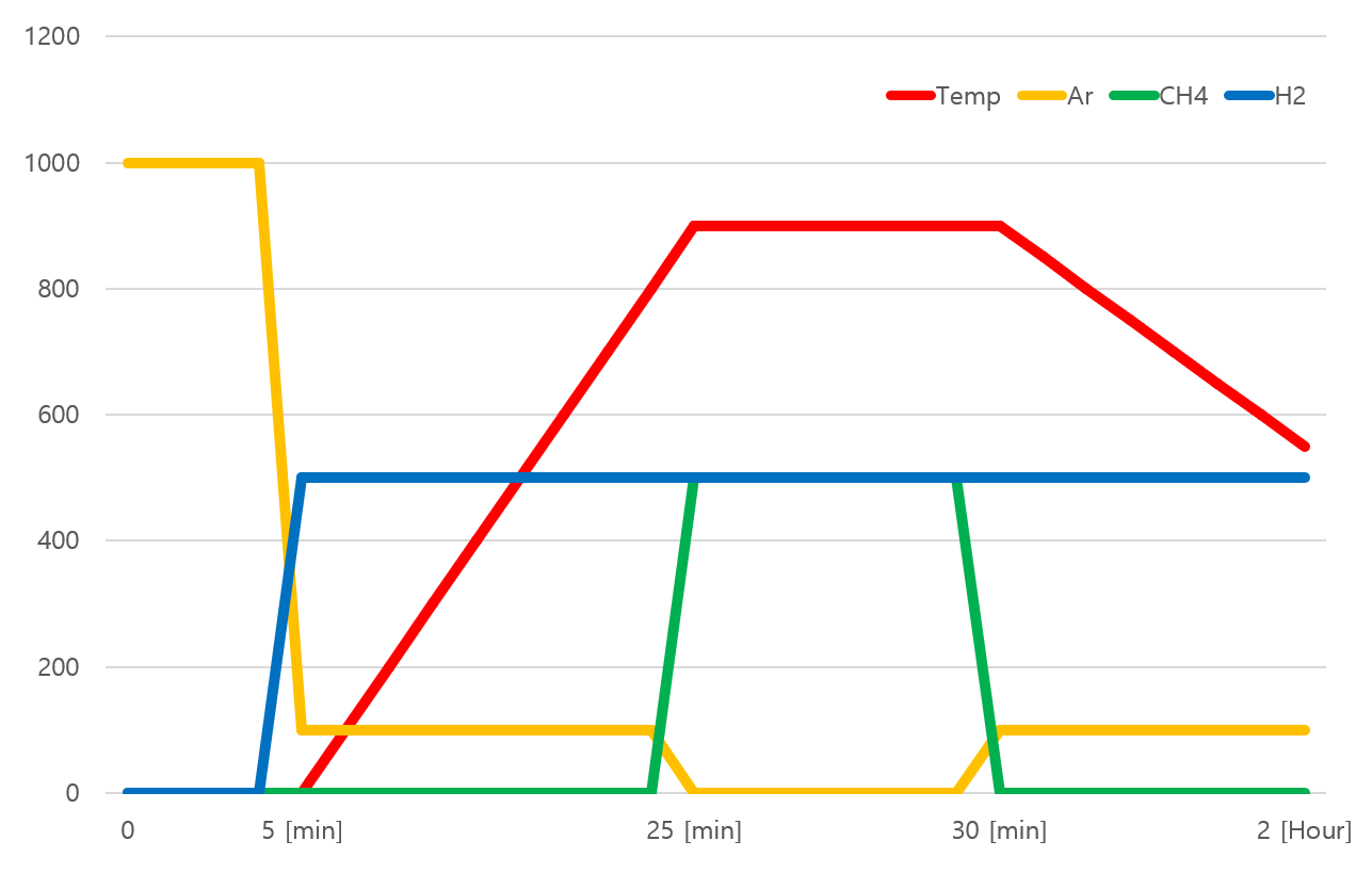 CVD Chamber 안정화 + 900°C까지 가열[C | 00:25 ~ 00:30 | 900°C]
