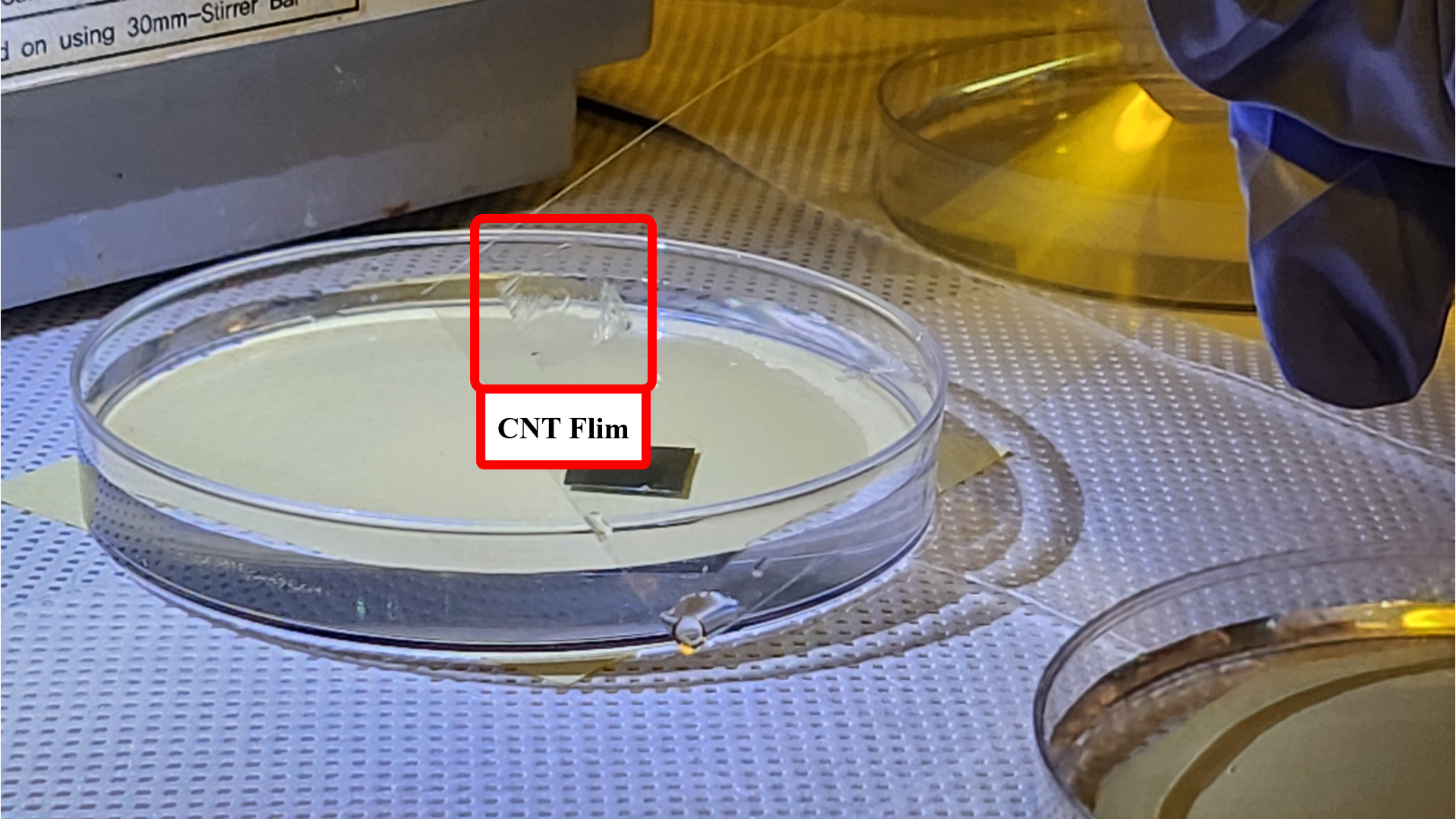 - Flim 형태로 Transfer 하기 쉽게 하기 위해 CNT 위에 PMMA를 코팅함.