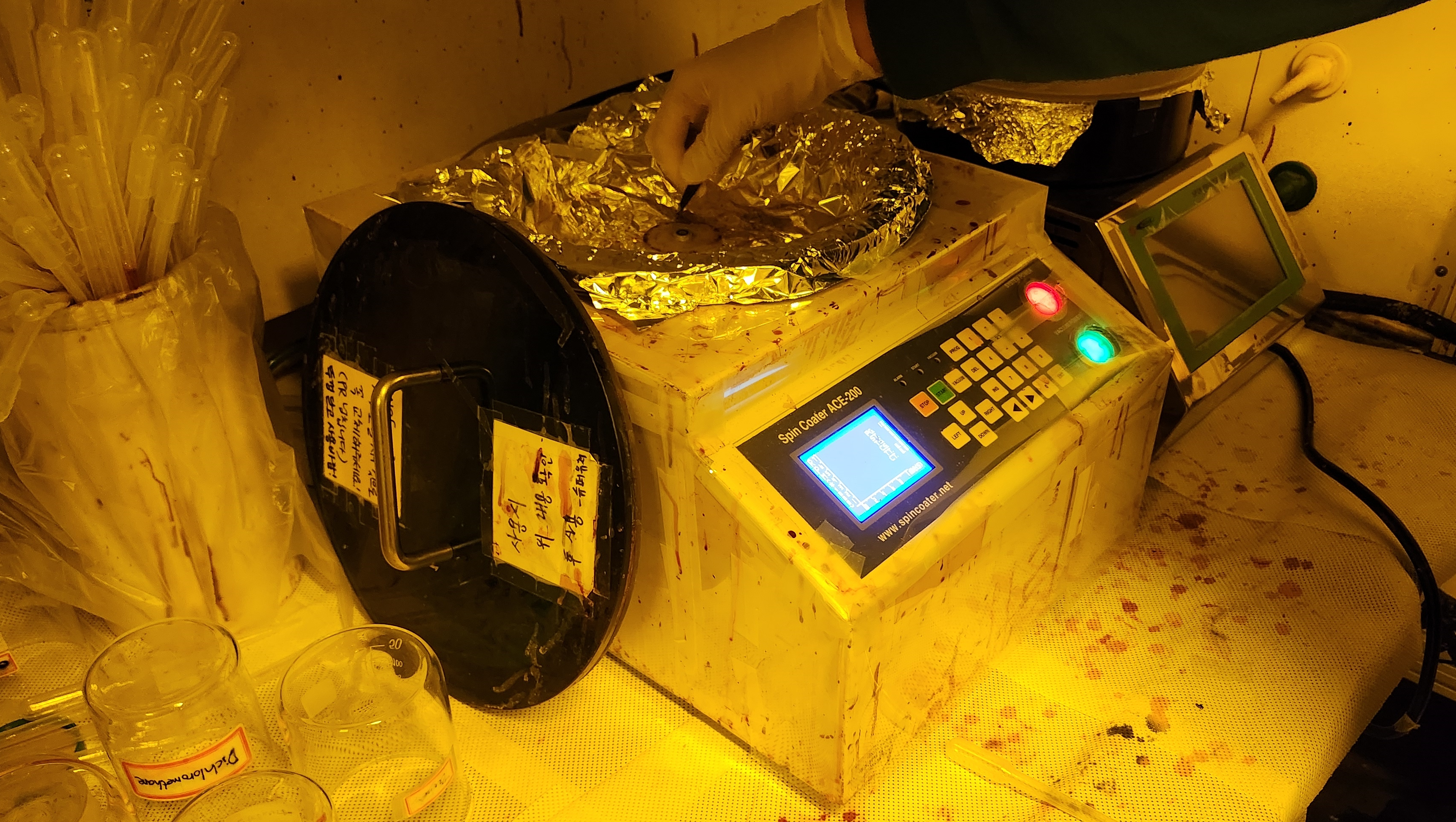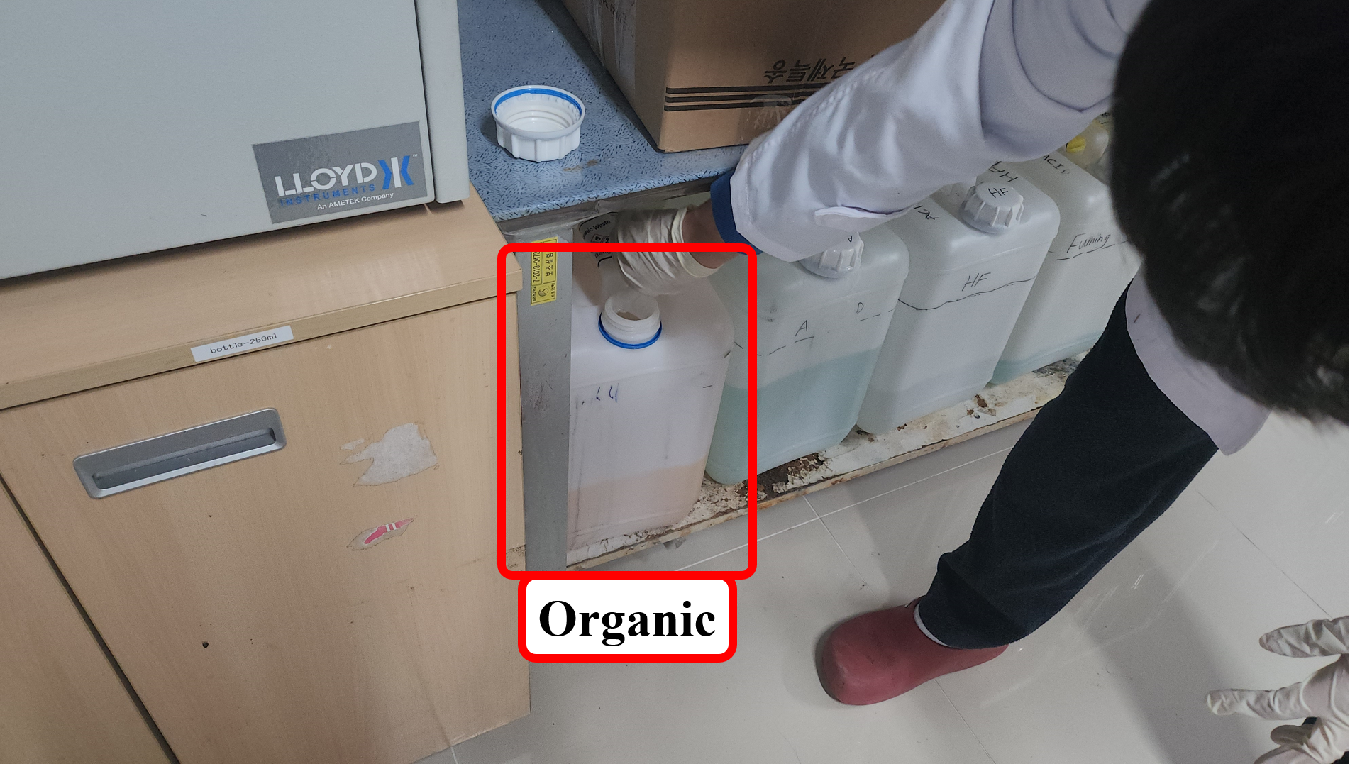 - IPA 먼저 Volume 측정, DI water 넣어서 섞은 후, FeNo3를 마지막에 넣는다