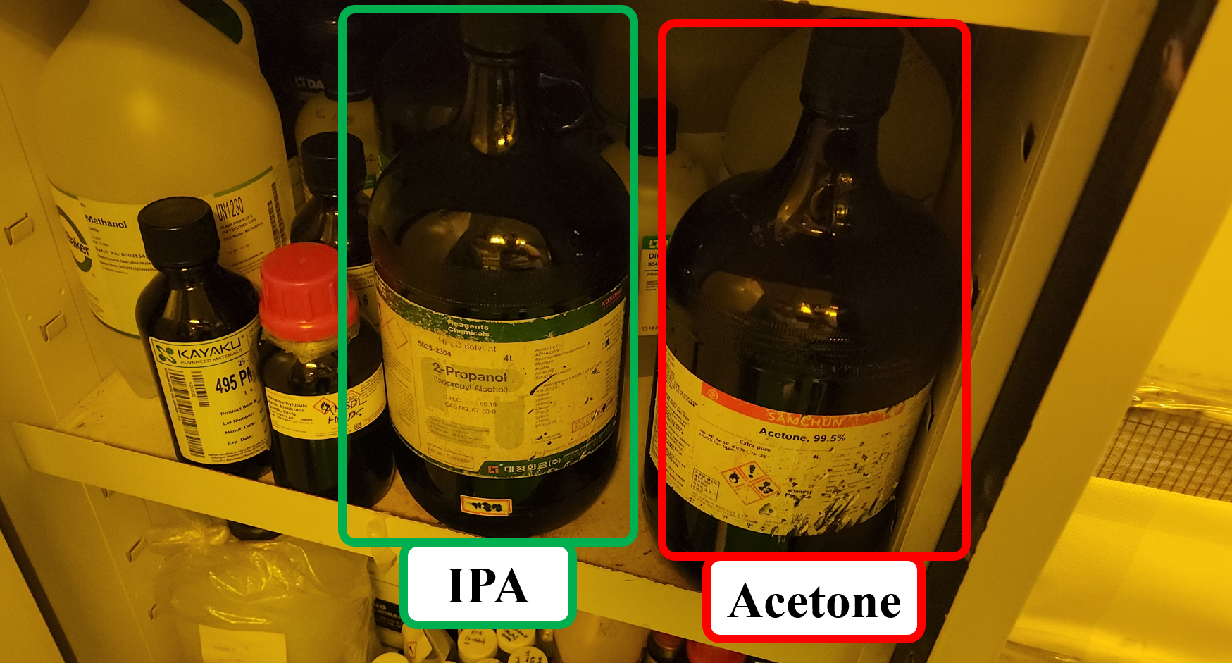 - IPA : Using Isopropyl Alcohol(IPA) to remove residual Acetone and other contaminants