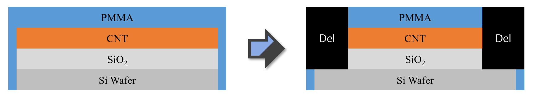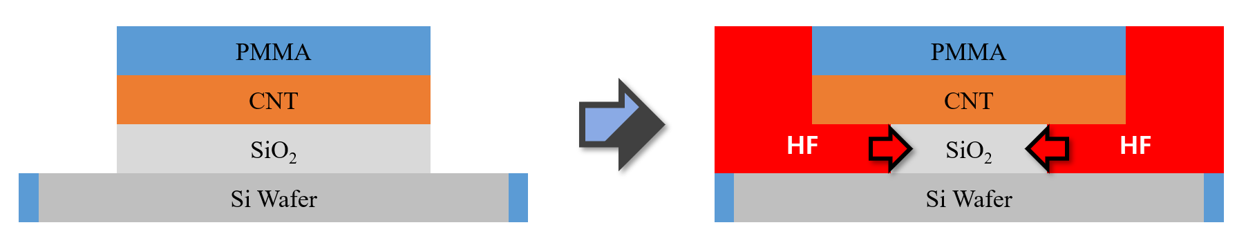 - HF가 CNT에 Damage를 주는 것을 막기 위해 CNT 위에 PMMA를 코팅함.