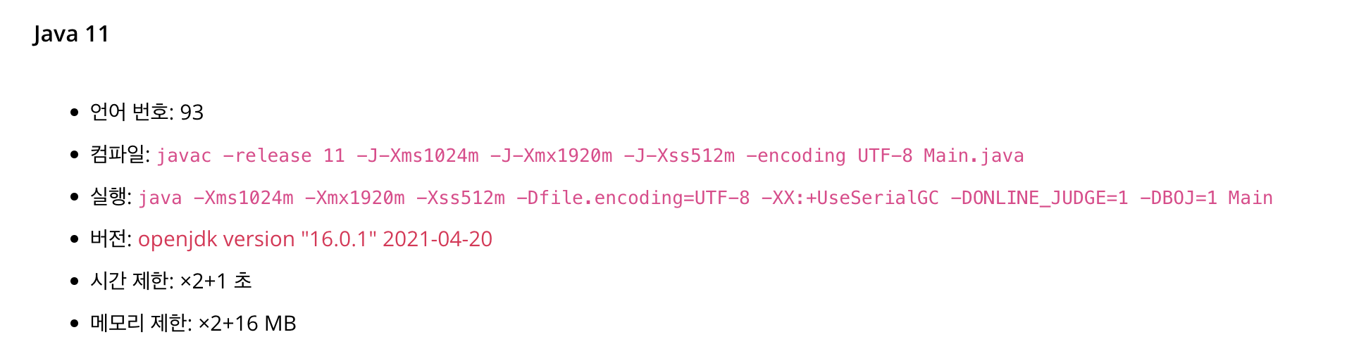 개인적으로 이 문제에서 왜 자바에 공간을 훨씬 더 많이 줬는지가 궁금해서 지인들에게 물어본 결과, JVM이 메모리에 올라와서로 결론났다. 그 외에도 자바는 기본적으로 메모리가 널널한 문제에서도 다음과 같은 특혜를 받고 있다.