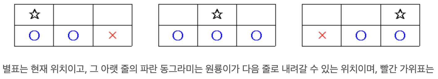 이때, 꼭대기 층부터 시작해서 아래층까지 내려올건데, 아래층으로 내려갈때는 현재 위치의 바로 아래 숫자 혹은 그와 이웃한 숫자들로만 이동가능하다. 아래 사진을 참고하자.