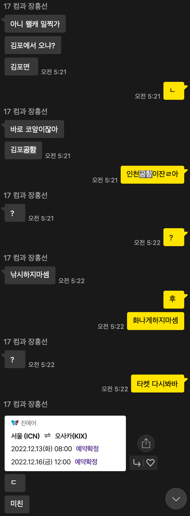 4시 반 칼기상을 때리고 샤워를 하고 5시에 세찬 바람을 뚫고 세상에 나왔다. 그런데 홍선이가 연락이 안된다. 이놈 영등포 살아도 인천공항 가려면 이제는 연락이 되야 하는데... 20분 정도 뒤 연락이 왔다. 근데 이 놈 상태가 이상하다.