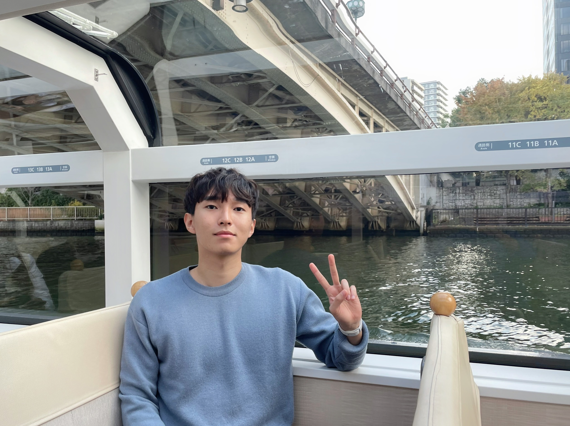 오사카 성에 들어가기에 앞서 주유패스를 사용해서 배를 타는 게 정말 효율적이라길래 배를 타려고 여기저기 찾아봤다. 선착장은 꽤나 멀리 있었고 생각보다 티켓 경쟁은 치열하지 않았다. 여기서 의심을 했어야했다. 내가 옳게 왔나? 고부자네 그게 맞나? 정답은 아니었다. 그 오사카 성 중심으로 동그랗게 물길이 있고 그 밖으로 오사카 전역을 도는 강이 있는데 오사카 성을 도는게 고부자네였고 내가 탄건 아쿠아라이너?? 라는 거였다. 물론 그거 탈 때는 모르고 헤헤거리면서 탔다. 배 타면서 오사카 성은 40분 코스 중 3분 정도 보이고 사라졌을 때 알아챘어야 했는데... 아무튼 굉장히 쾌적하게 앞뒤좌우 사람 아무도 없이 혼자 창가에 붙어서 배를 탔고 강변에 앉아있는 사람들에게 무수한 인사를 나누며 오사카 주변을 살살 돌았다.