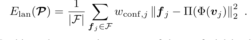 Feature Landmark의 경우에는 당시 sota facial landmark tracking algorithm을 차용해 각 feature point를 뽑아서 그 차이를 계산하는 형식을 띈다고 합니다. 자세한 과정은 아래식에 존재합니다.