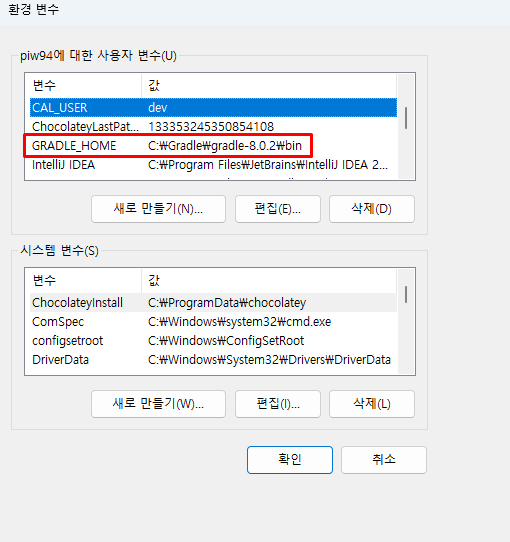그리고 Gradle이 설치되어 있지 않아서 프로젝트가 원하는 버전으로 설치했다.