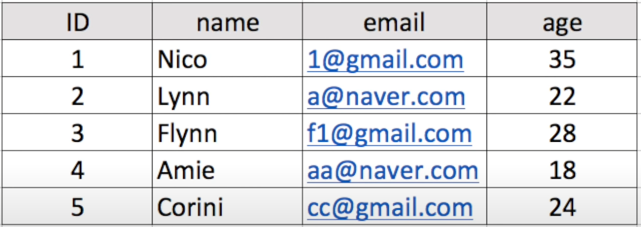 SQL은 사실 엑셀 문서와 똑같이 생겼어