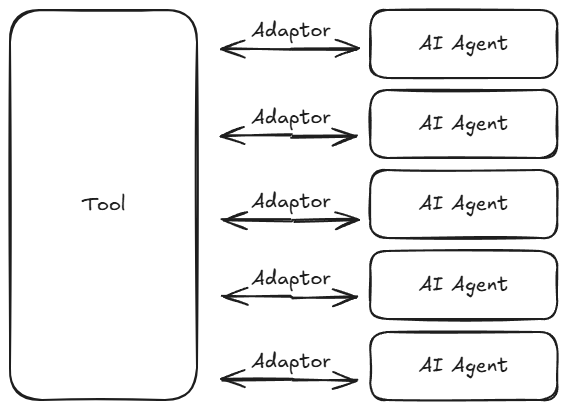 결국 Tool 서비스를 만드는 개발자나 회사는 서비스를 만들기 위해서는 Tool에대한 공부뿐만 아니라 각 Agent마다 Tool을 연결하는 방법을 공부하거나 어댑터를 만드는 데 많은 노력과 시간을 써야만 했다. 그래서 이런 Tool 서비스들은 큰 회사에서 많이 만들고 일반 개발자나 작은 회사들에게는 주목받기 어려웠다.