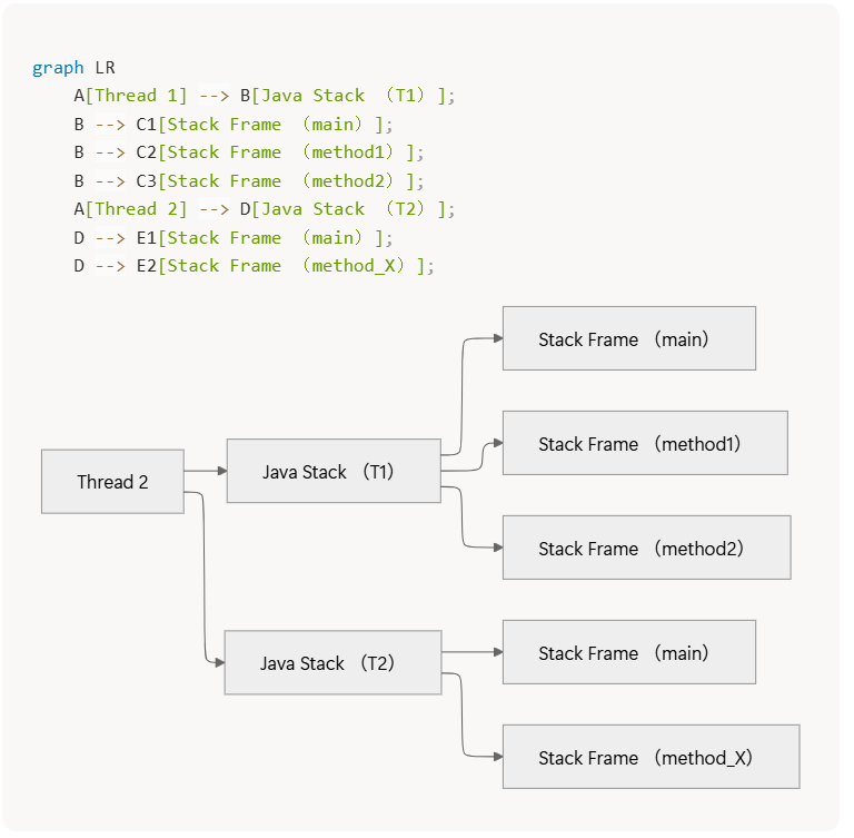 - ์๋ฐ ์คํ (Java Stack)์ ์ฐ๋ ๋๋ณ๋ก ํ๋์ฉ ์กด์ฌํ๋ฉฐ, ๋ฉ์๋๋ฅผ ํธ์ถํ ๋๋ง๋ค ์๋ก์ด ์คํ ํ๋ ์(Stack Frame)์ด ์๊ฒจ๋ฉ๋๋ค .