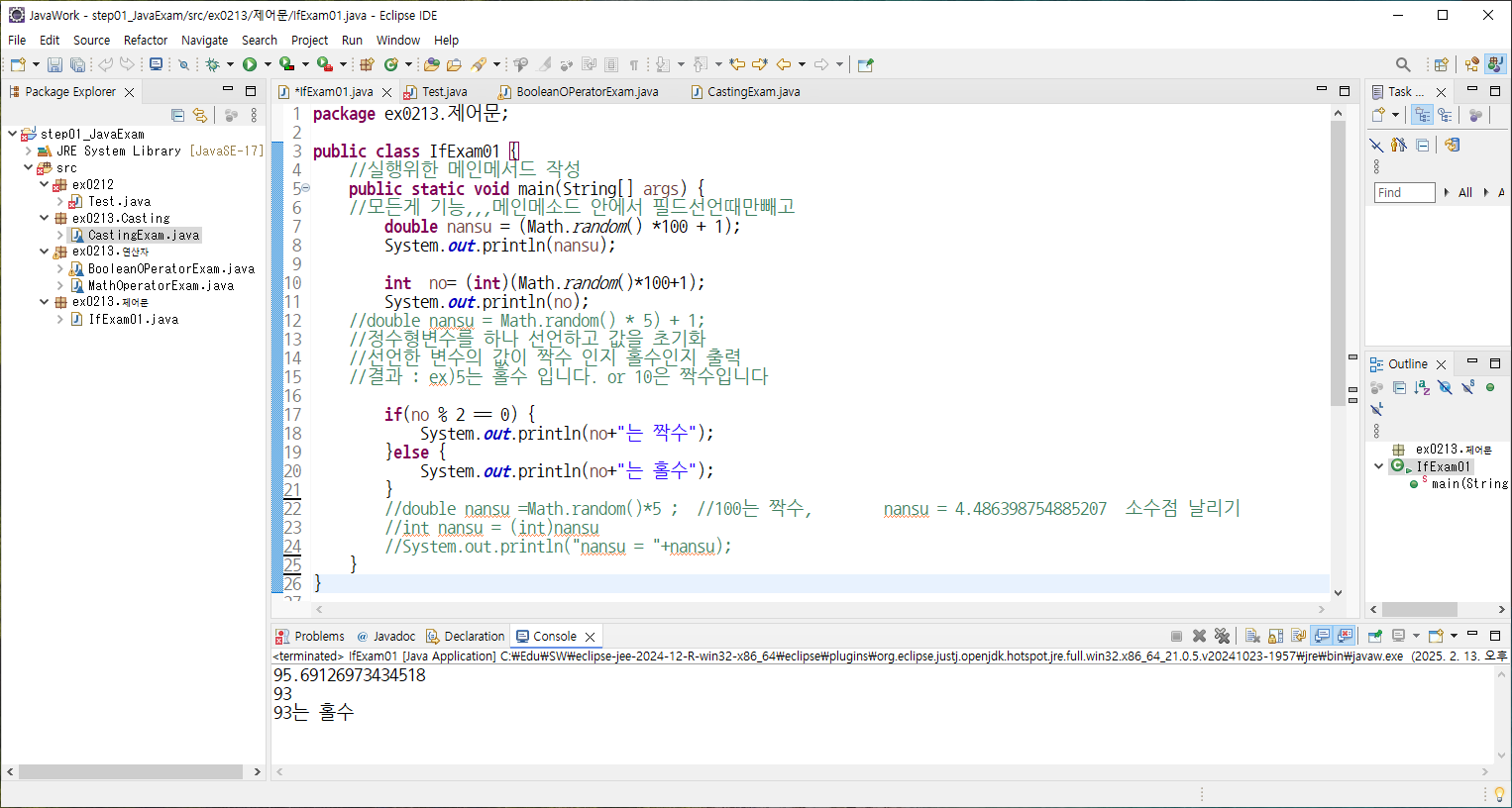 //double nansu =Math.random()*5 ; //100는 짝수, nansu = 4.486398754885207 소수점 날리기
