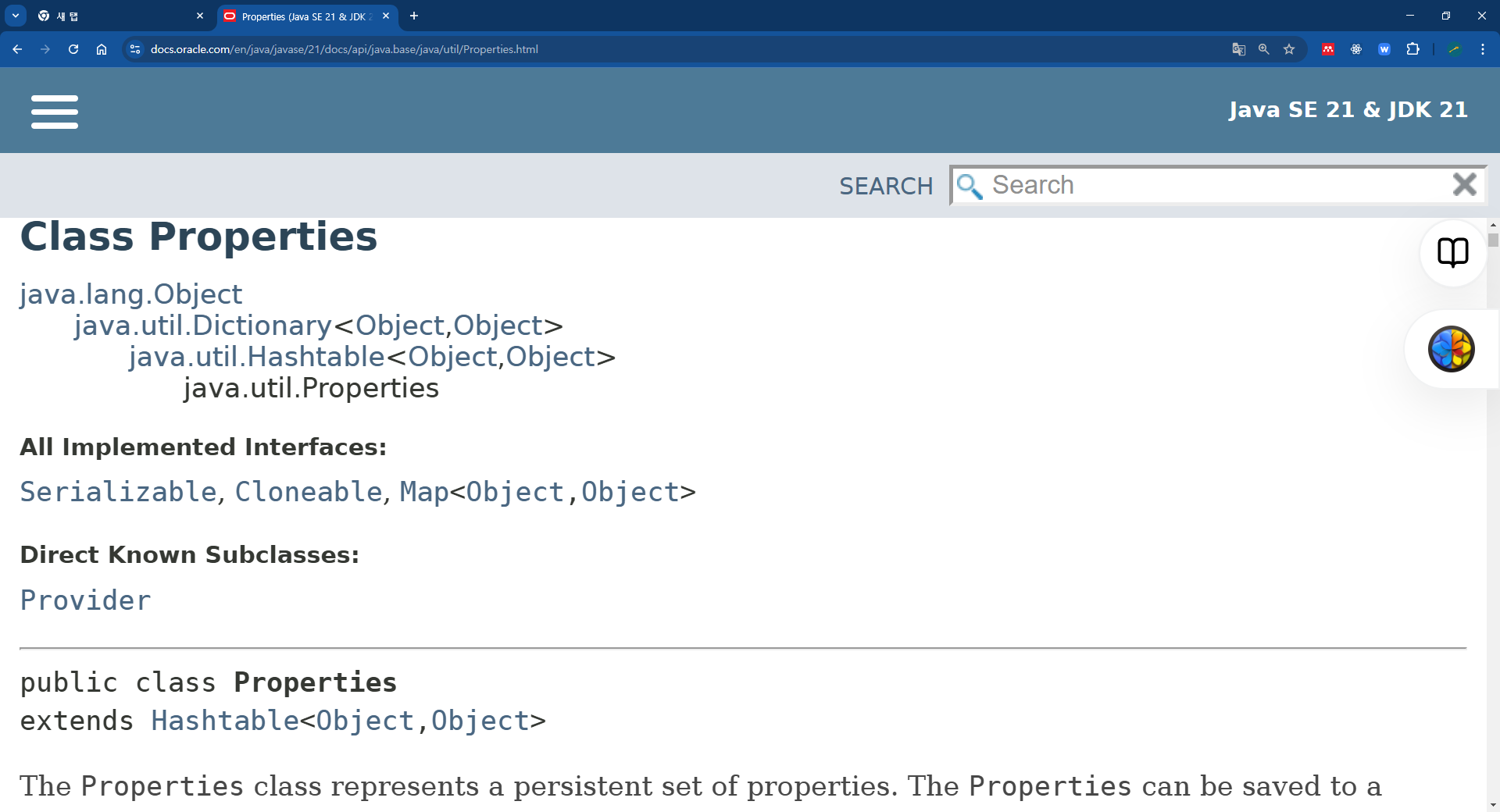 PropertiesExam 클래스의 객체가 생성됨.PropertiesExam()이 실행됨.Properties 객체 생성