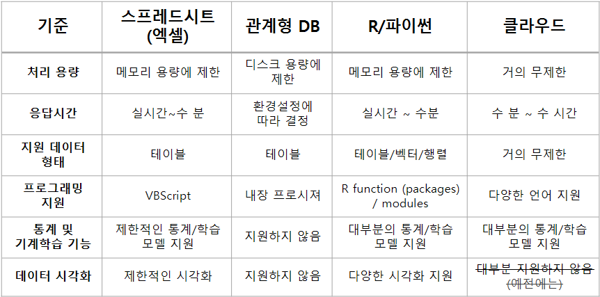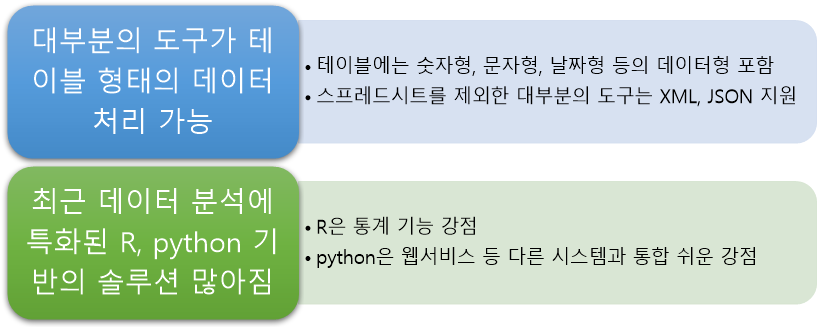 - 엑셀보다 큰 데이터 처리 가능
