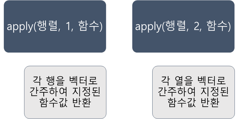 - 행렬, 데이터프레임과 같은 테이블 형식에 사용 가능