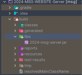 빌드가 성공적으로 완료되면 build/libs 폴더에 JAR 파일이 생성되게 됩니다.