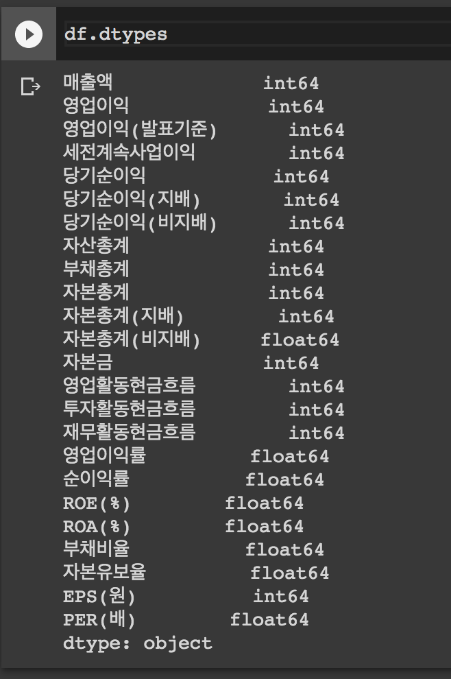 df.dtypes를 하면 타입들을 알 수 있다.