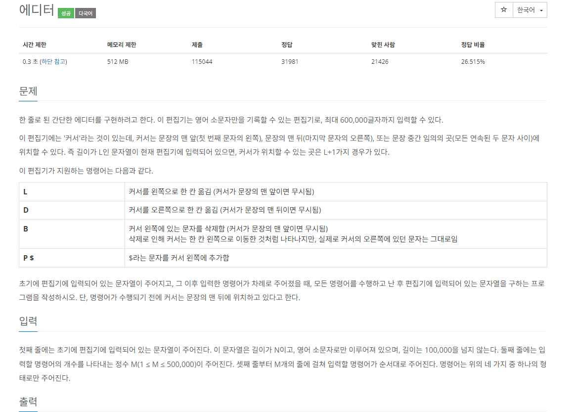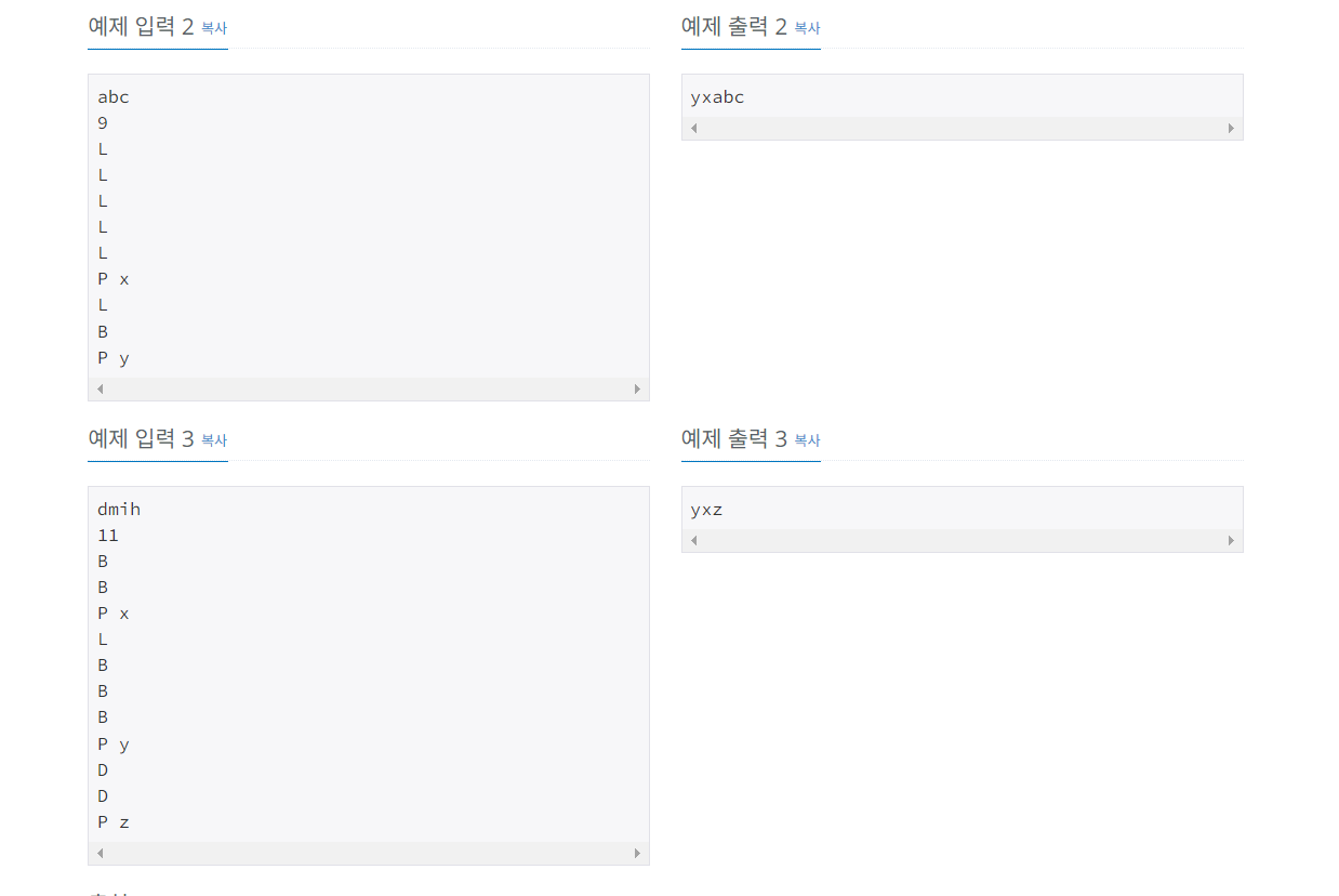 //백준 1406번 에디터