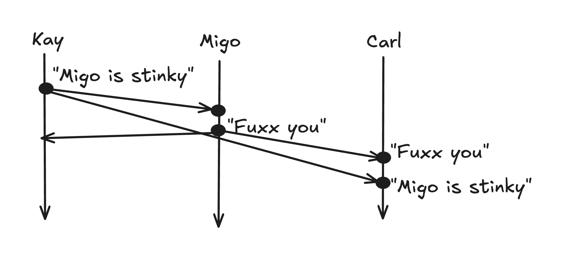 But then how do we make sure, from Carl's perspective Kay's message receives arrives first and then Migo's one?