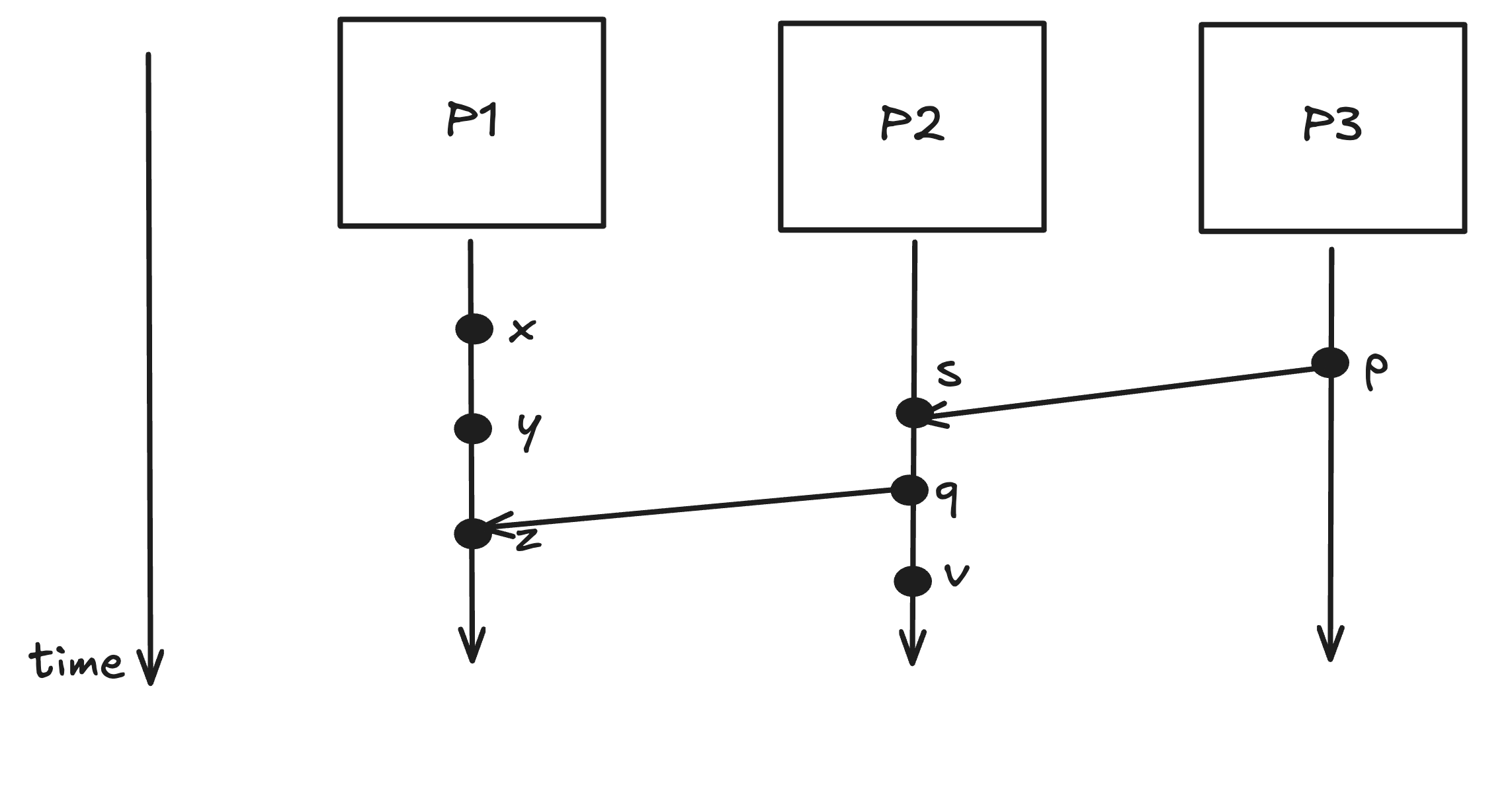When we draw events that happen in two processes, we don't know what event causes one another in what time. The diaram like the following seems benign but it definitely causes some confusion.
