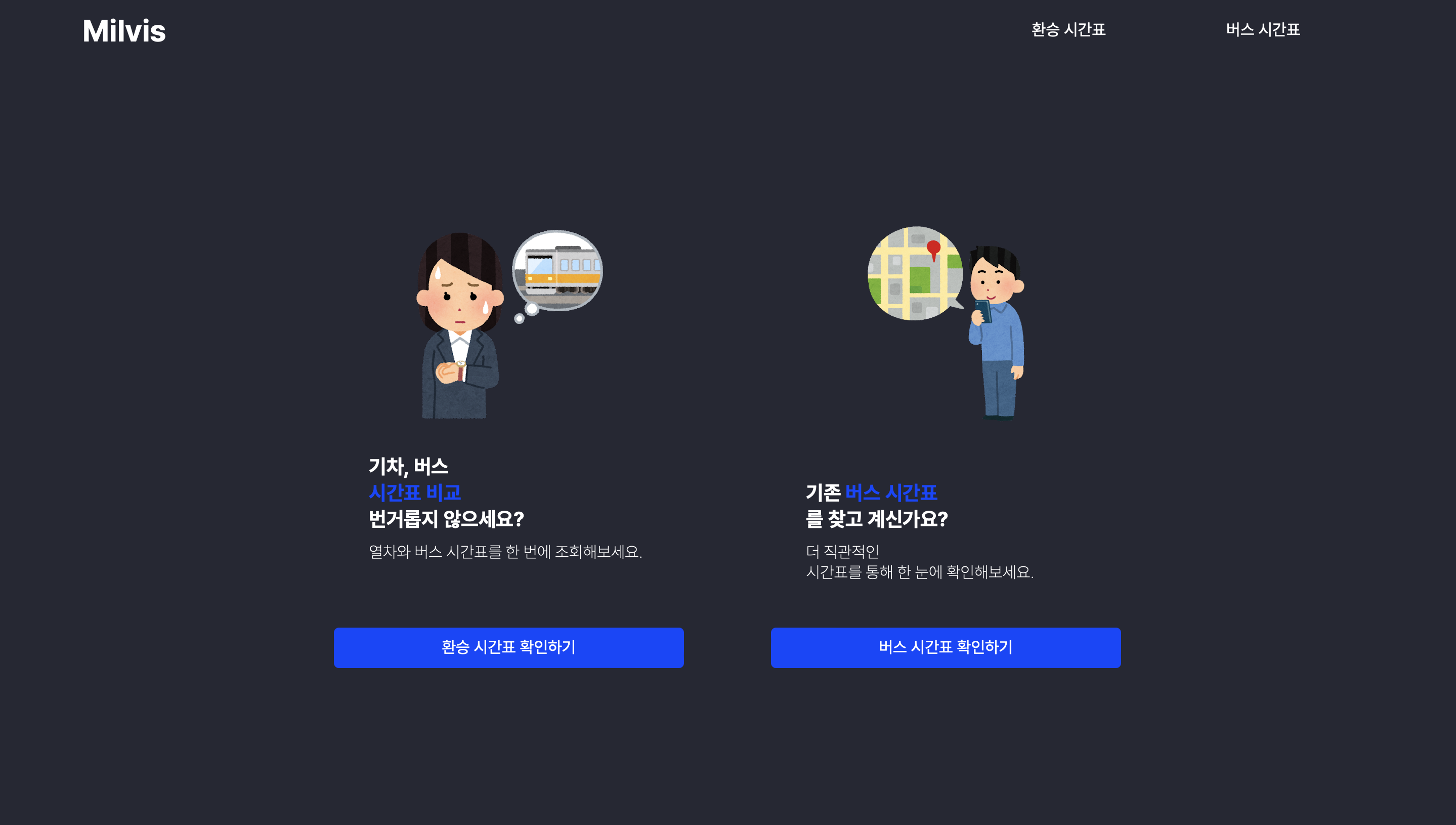 두 대중교통의 환승 시간을 편하게 볼 수 있도록 시간표를 한꺼번에 비교할 수 있으면 좋겠다고 생각했다.