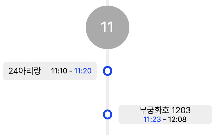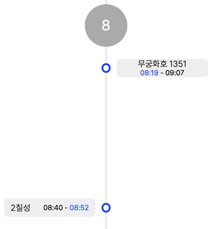 더불어 해당 시간 간격은 일정하게 떨어져 있는 게 아니라, 환승 시간을 시각적으로 보여주고 싶었다.